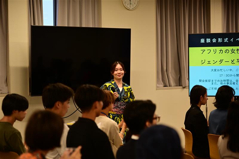 招へいプログラムの一環で開催した座談会形式イベント「アフリカの女性と一緒に考えるジェンダーと平和」では、入社1年目のアシスタントコンサルタント2名が企画・運営に関わり、当日も司会進行などで大活躍しました。